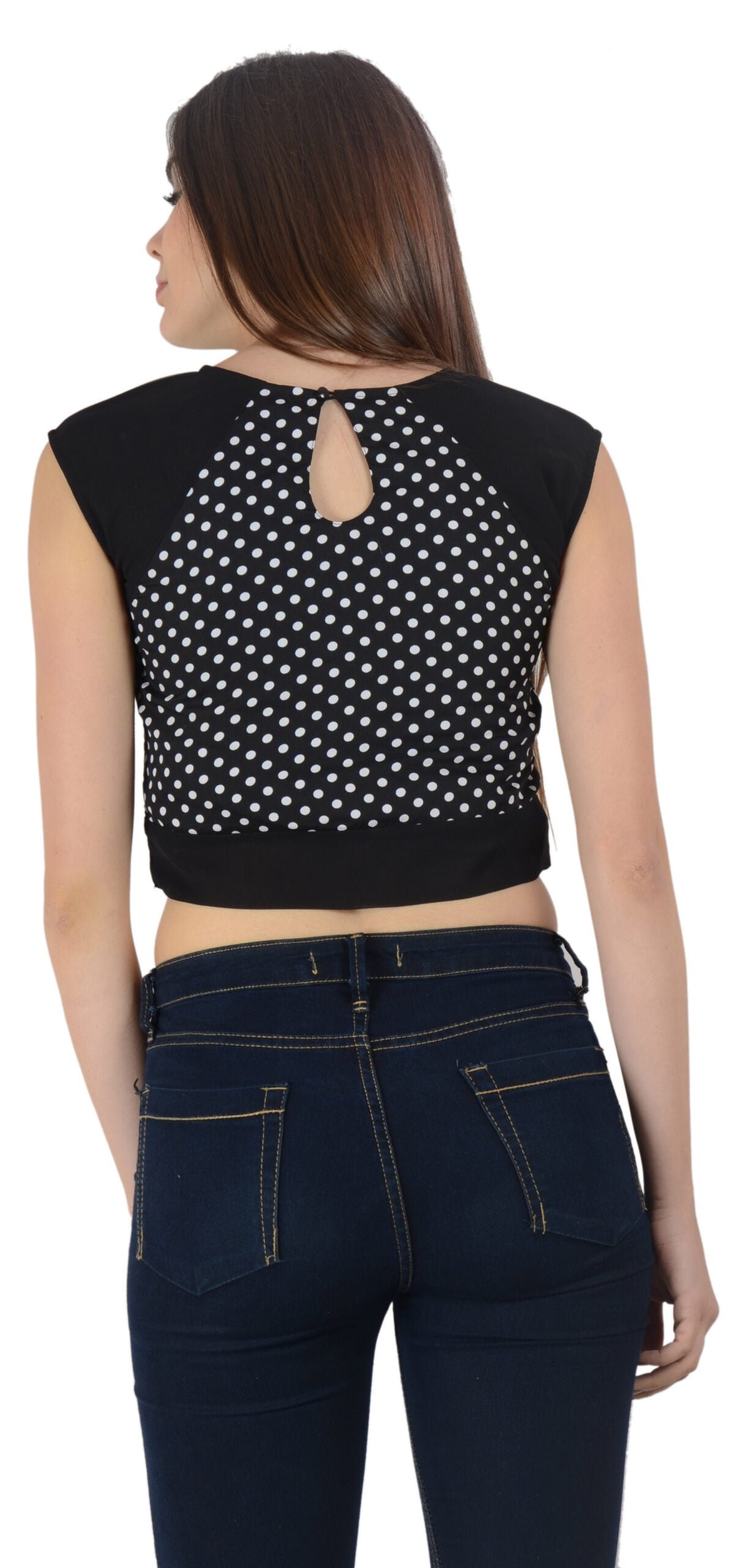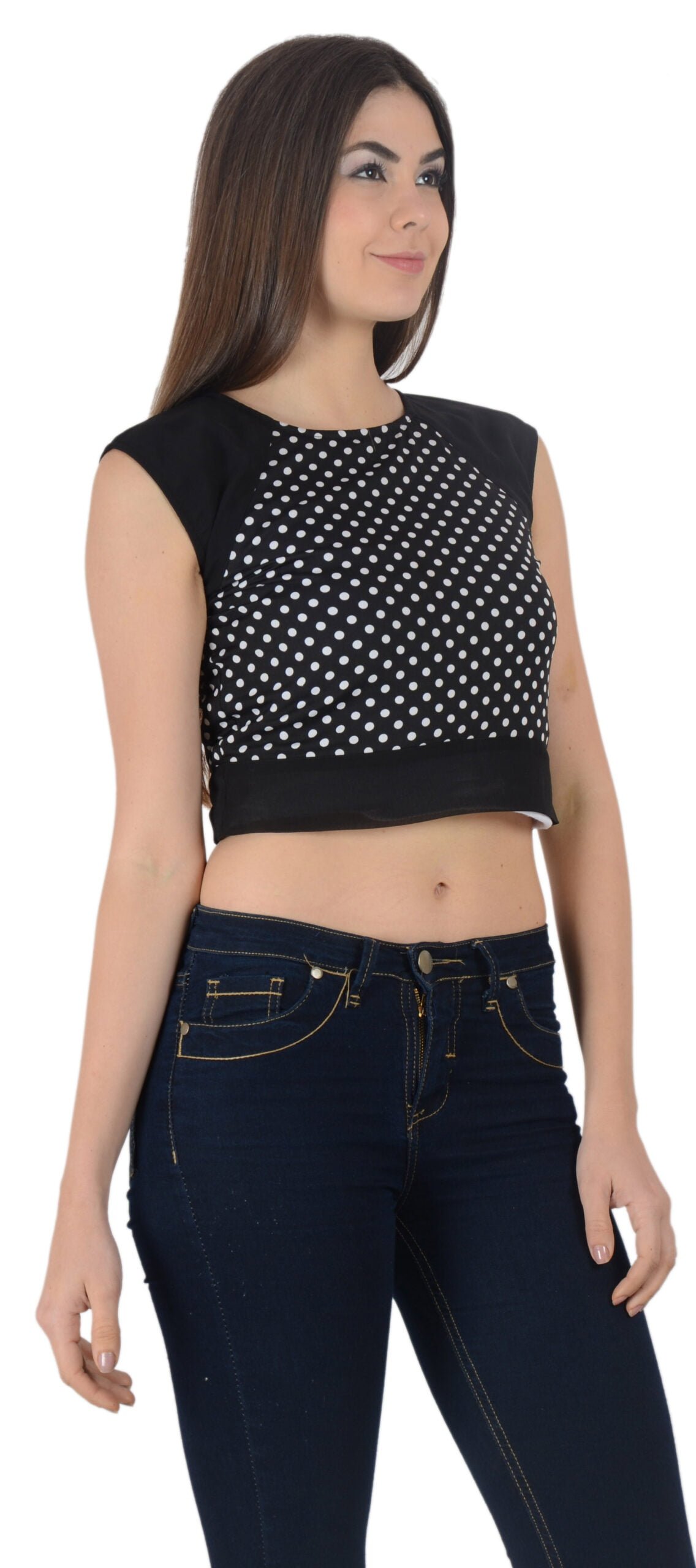 Polka Doted Black Crop Top For Women, Teen & Girls