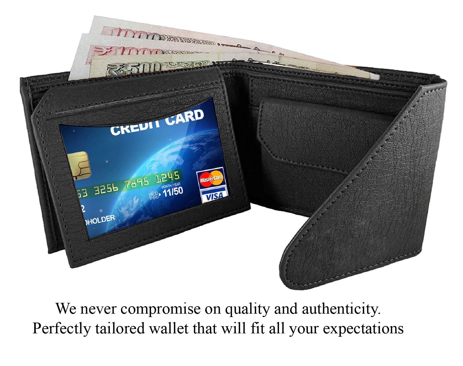 PRODUCT FEATURES: Wallet made with 100% Genuine Leather PU. Includes 3 Credit Card Slots,1Photo id Slot, 2 Secret Pockets, 2 Currency Compartment and 1 Coin Pocket.