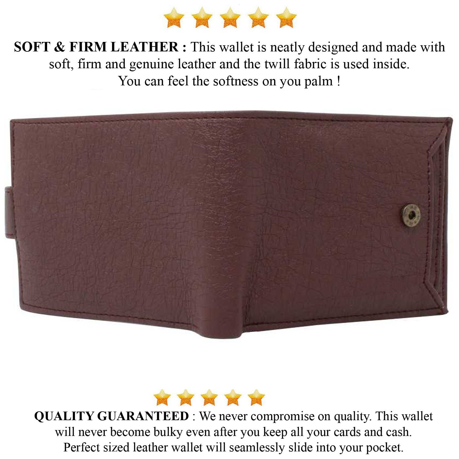 PRODUCT FEATURES: Wallet made with 100% Genuine Leather PU. Includes 3Credit Card slot, 2 Secret Pockets, 2 Currency Compartment,1 coin pocket.