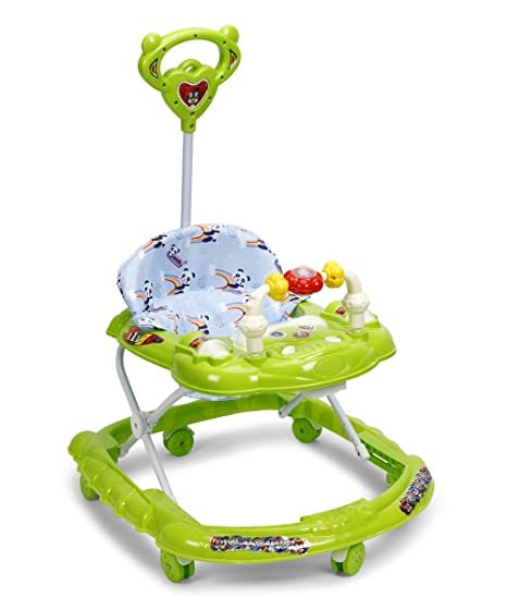The Parent Push Bar is available for Parents to control the direction of the walker without Bending themselves and also protect the baby from going in the wrong direction. There is an electronic toy tray with a rotating wheel so that your baby feels he is driving his own Rideon. The Musical rhymes help to keep your child entertained and also make him/her learn the poems.