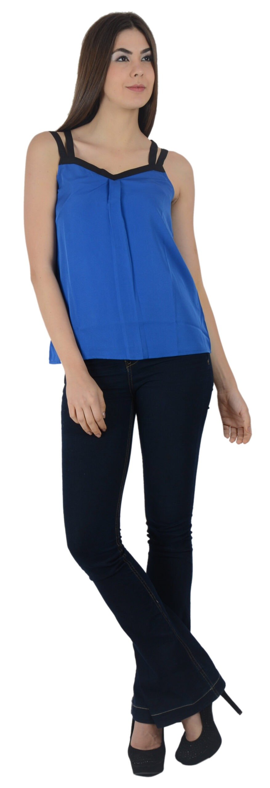 Strappy Tops for Women & Girls – Women double strap red top with box pleat in front , black strap give them awesome look. This regular fit top is perfect for day to activity .Get this trendy pretty top in beautiful blue and red color to flaunt for casual wear occasions. Lay your hands on this wonderful collection of tops in crop types to look your best . Opt for this top made up of polyester material and get it in a round neck design. bring home attractive tops priced pocket friendly.